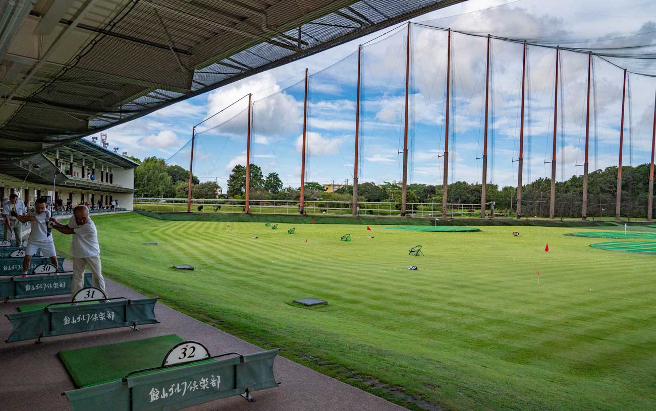 千葉県館山市の中心市街から車で6分の郊外にある27,000㎡の広い敷地に70打席・220ヤードのゆったりとした練習場です。みどりの林に向かってショットすると、まるでコースに出たような爽快な気分で練習ができます。